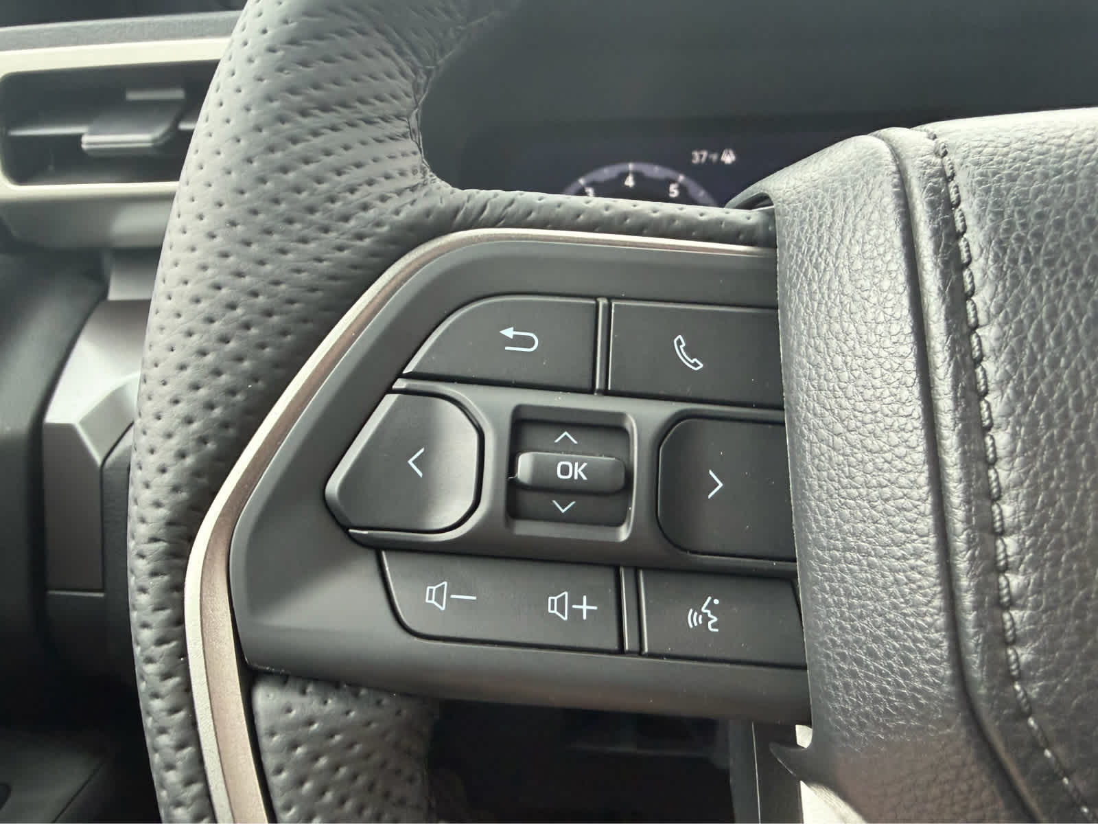 • Leather-trimmed manual tilt/telescopic steering wheel with phone, audio, display/infotainment, and Driver Assist controls
